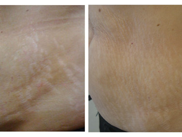 Frakcijski laseri optičkom energijom napravi mikroskopska oštećenja ispod površine kože u svrhu zamjene oštećenog kolagena za novi kolagen. Tako smanjuju strije i potaknu stvaranje novog kolagena na mjestu strije. Tretman se radi sa ili bez anestetske kreme. Moguća je pojava crvenila koje traje 1 do 3 dana. Koristimo ablativne lasere koji oštećuju površinu kože (CO2 i Erbium) i neablativne koji ne oštećuju kožu (1470 nm).