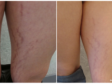 Koriste se Pulse Dye laser i Frac3 (kratkovalni Neodymium YAG) laseri koji optičkom energijom djeluju protupalno te uništavaju kapilare. Tretman ne boli i nema oporavka. Prosjek je oko 3 tretmana radi se svakih 3 do 4 tjedna. Tretman smanjuje ili uklanja crvenu boju, ali strija dalje ostaje te se uklanja posebnim uređajima.